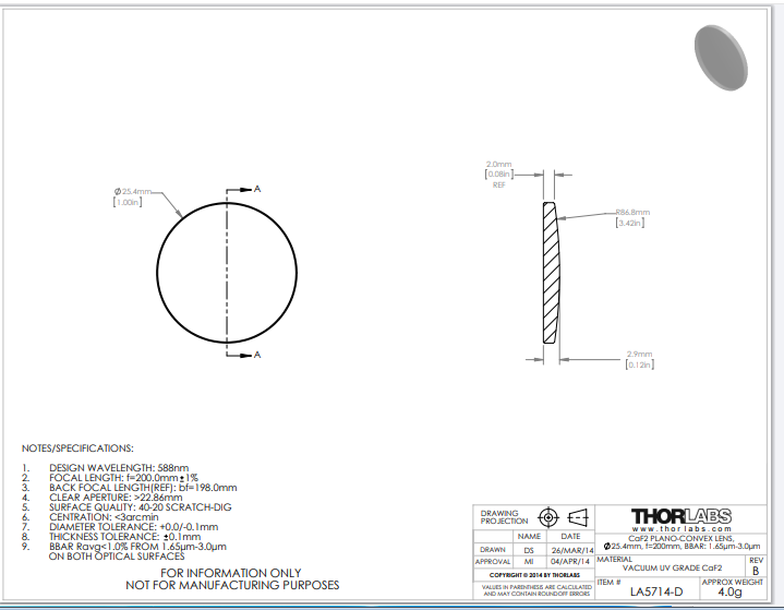 Thorlabs索雷博     LA5714-D   平凸透镜