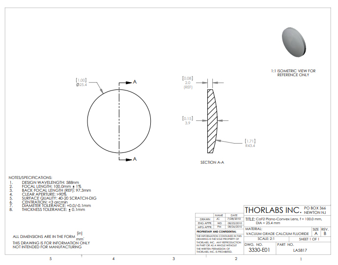 Thorlabs索雷博 LA5817 平凸透镜