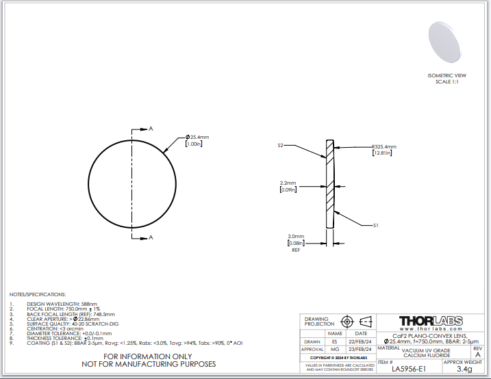 Thorlabs索雷博 LA5956-E1 平凸透镜