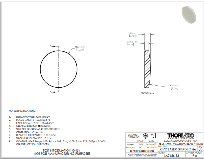 Thorlabs索雷博 LA7656-E3 平凸透镜