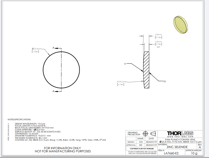 Thorlabs索雷博     LA7660-E2   平凸透镜