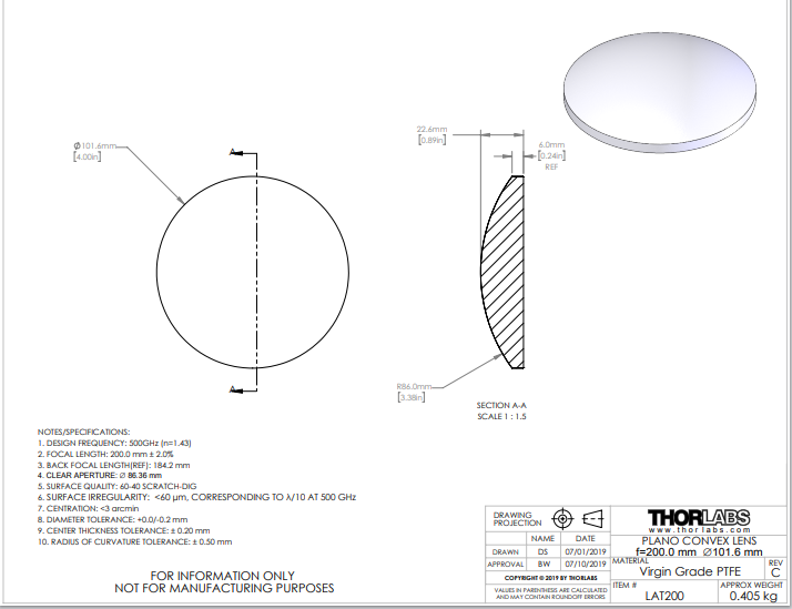Thorlabs索雷博 LAT200 平凸透镜