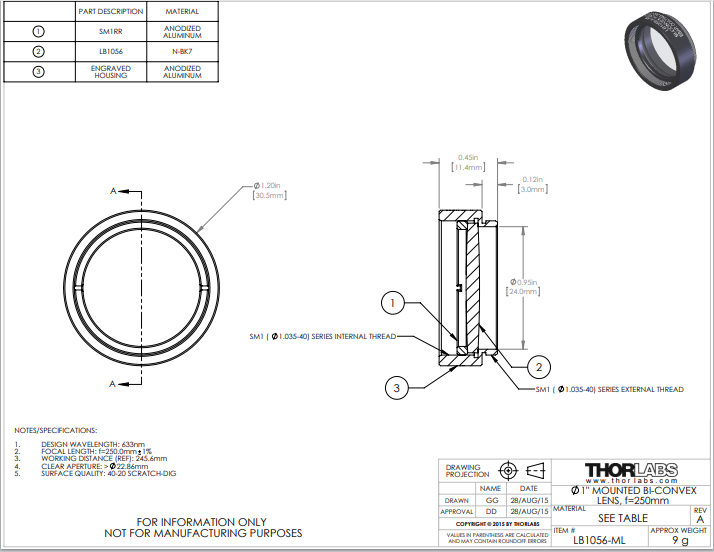 Thorlabs索雷博 LB1056-ML 双凸透镜