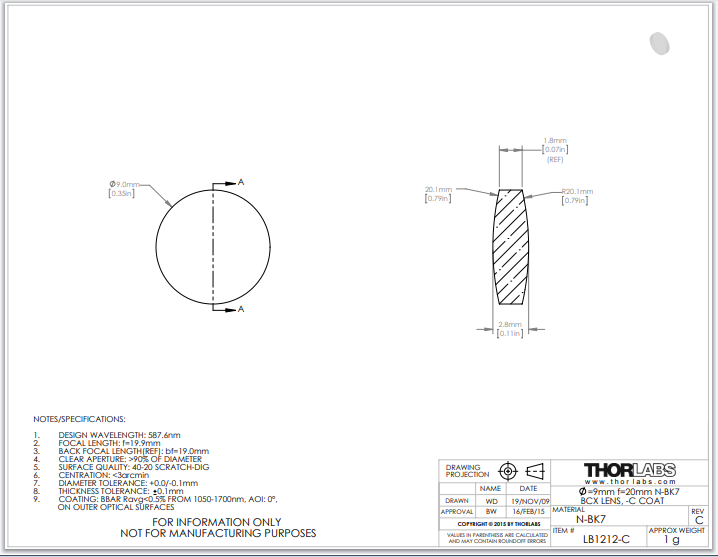 Thorlabs索雷博     LB1212-C   双凸透镜