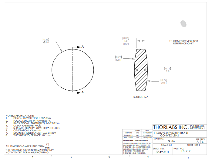 Thorlabs索雷博 LB1212 双凸透镜