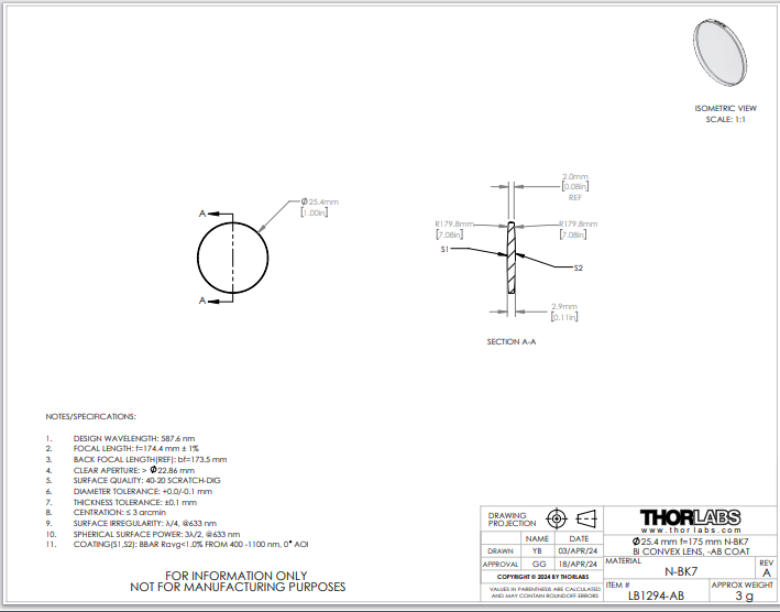 Thorlabs索雷博 LB1294-AB 双凸透镜