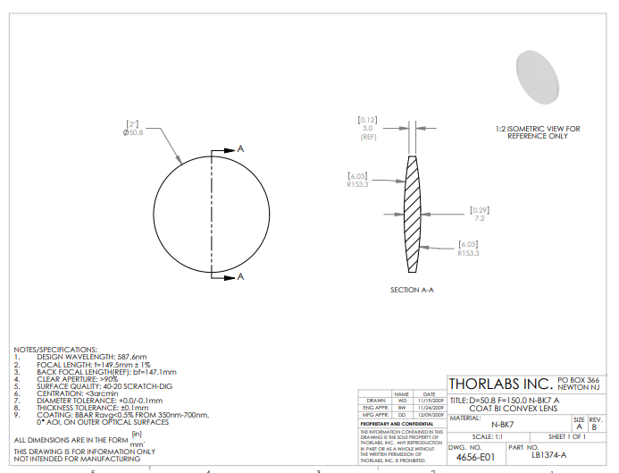 Thorlabs索雷博     LB1374-A   双凸透镜
