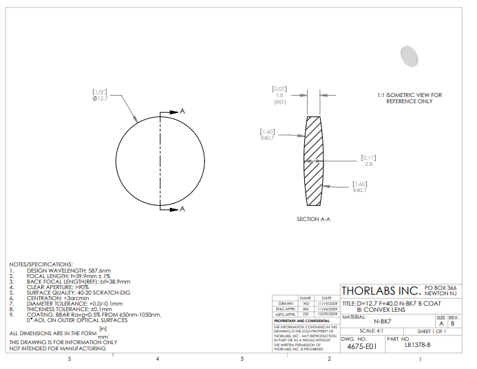 Thorlabs索雷博 LB1378-B 双凸透镜