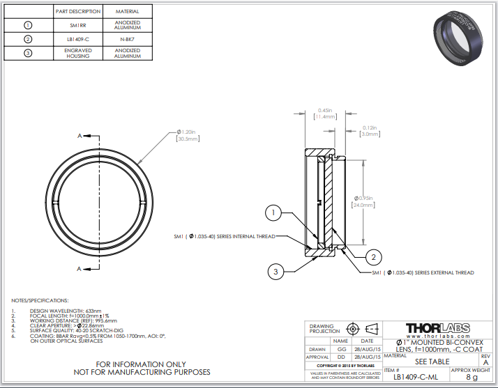 Thorlabs索雷博 LB1409-C-ML 双凸透镜