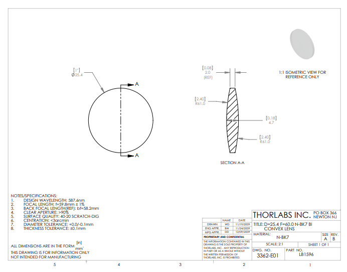 Thorlabs索雷博 LB1596 双凸透镜