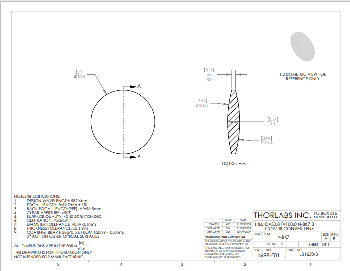 Thorlabs索雷博 LB1630-B 双凸透镜