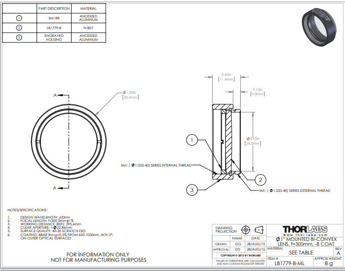 Thorlabs索雷博 LB1779-B-ML 双凸透镜