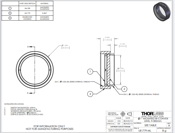 Thorlabs索雷博 LB1779-ML 双凸透镜