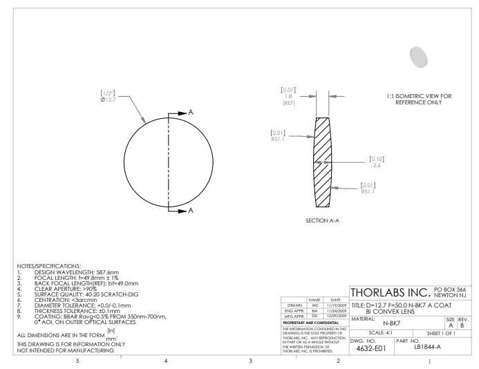 Thorlabs索雷博     LB1844-A   双凸透镜