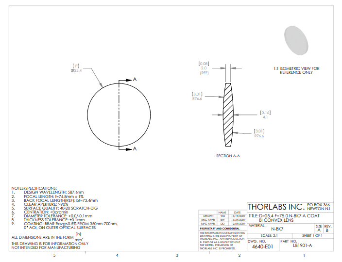 Thorlabs索雷博     LB1901-A   双凸透镜