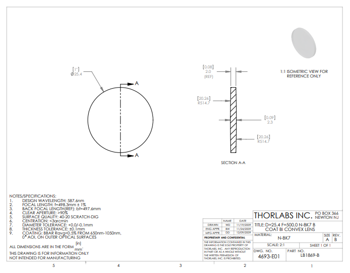 Thorlabs索雷博     LB1869-B   双凸透镜