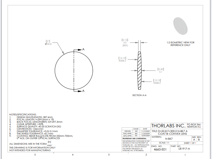 Thorlabs索雷博     LB1917-A   双凸透镜