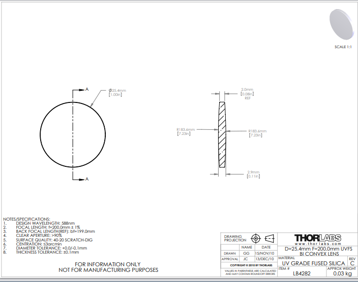 Thorlabs索雷博 LB4282 双凸透镜