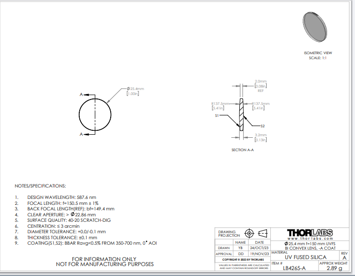Thorlabs索雷博 LB4265-A 双凸透镜