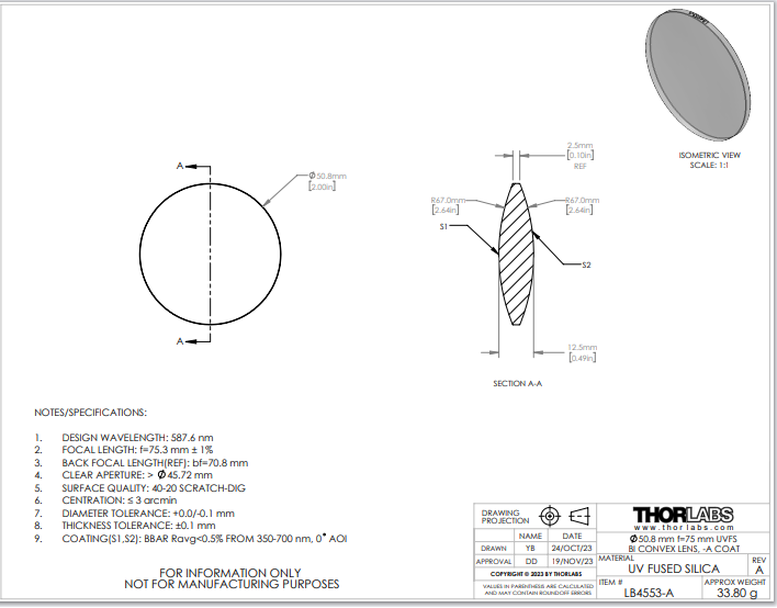 Thorlabs索雷博 LB4553-A 双凸透镜