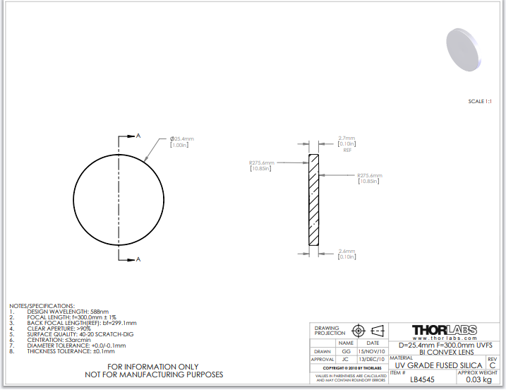 Thorlabs索雷博 LB4545 双凸透镜