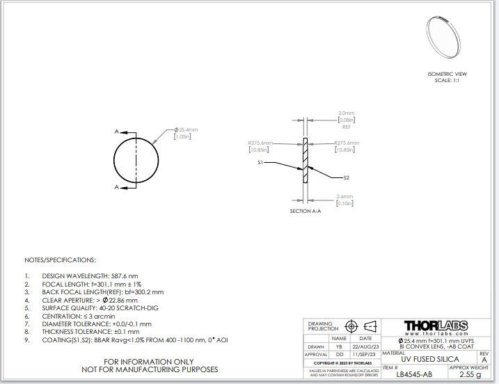 Thorlabs索雷博 LB4545-AB 双凸透镜