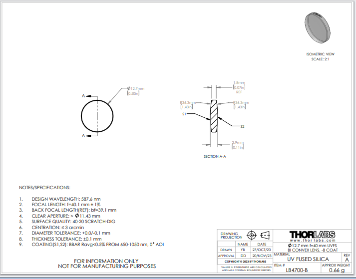 Thorlabs索雷博 LB4700-B 双凸透镜