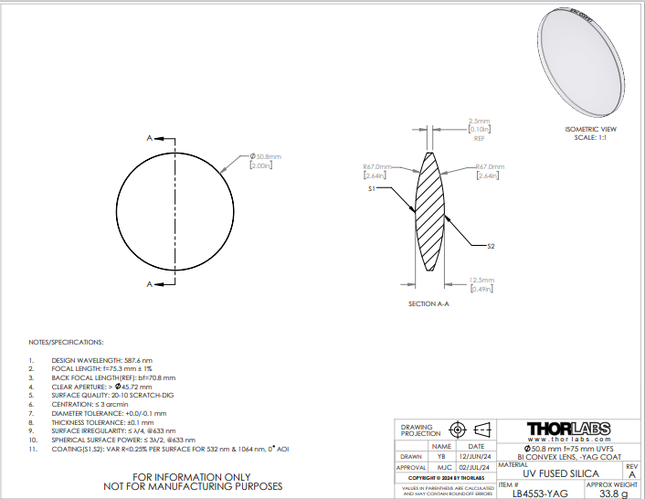 Thorlabs索雷博 LB4553-YAG 双凸透镜