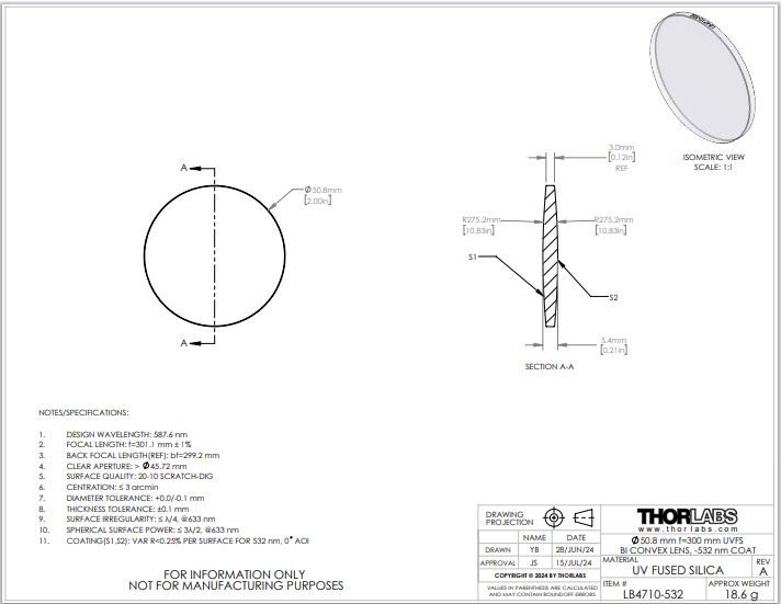 Thorlabs索雷博 LB4710-532 双凸透镜