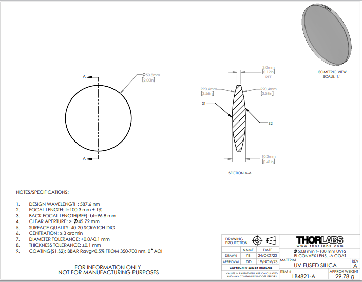 Thorlabs索雷博     LB4821-A   双凸透镜