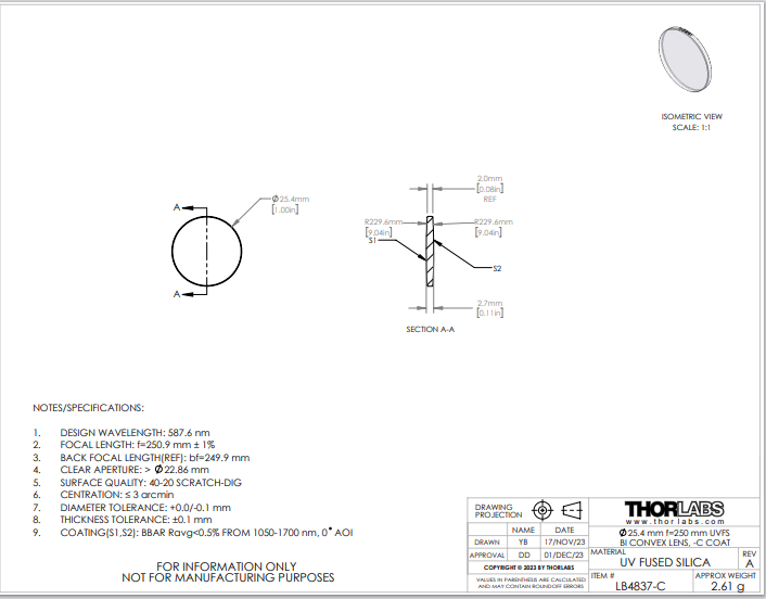 Thorlabs索雷博 LB4837-C 双凸透镜