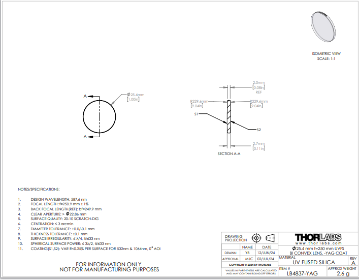 Thorlabs索雷博 LB4837-YAG 双凸透镜