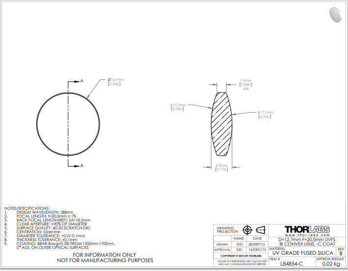 Thorlabs索雷博 LB4854-C 双凸透镜