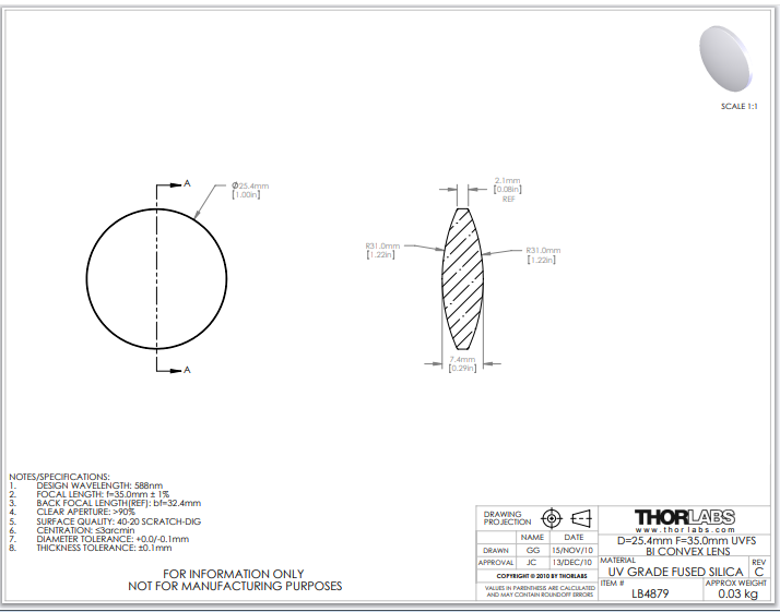 Thorlabs索雷博 LB4879 双凸透镜