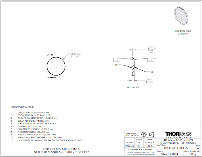 Thorlabs索雷博     LB4913-1064 双凸透镜