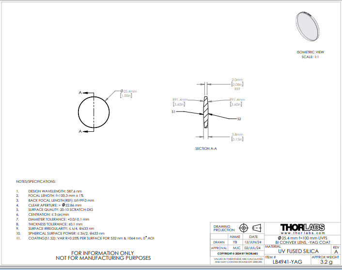 Thorlabs索雷博 LB4941-YAG 双凸透镜