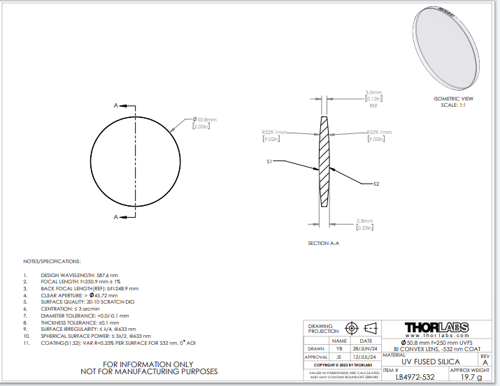 Thorlabs索雷博 LB4972-532 双凸透镜