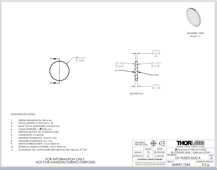 Thorlabs索雷博 LB4941-1064 双凸透镜
