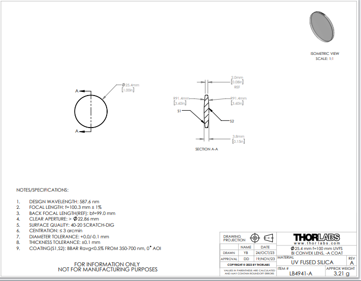 Thorlabs索雷博 LB4941-A 双凸透镜
