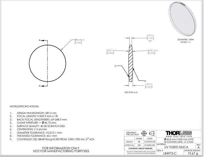 Thorlabs索雷博 LB4972-C 双凸透镜