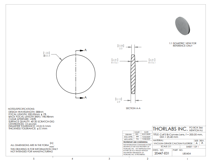 Thorlabs索雷博 LB5454 双凸透镜
