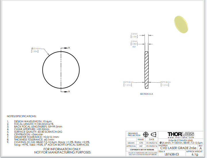 Thorlabs索雷博     LB7638-E3   双凸透镜