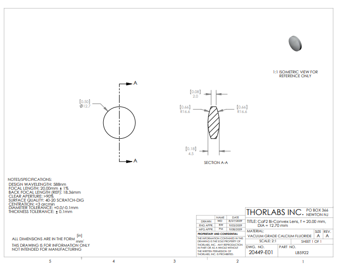 Thorlabs索雷博 LB5922 双凸透镜