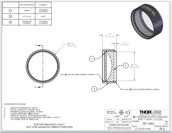 Thorlabs索雷博 LC1315-A-ML 平凹透镜