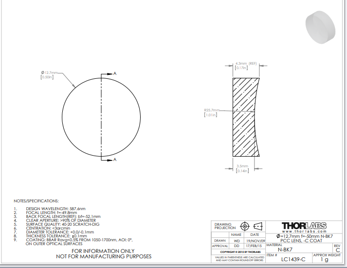 Thorlabs索雷博     LC1439-C   平凹透镜