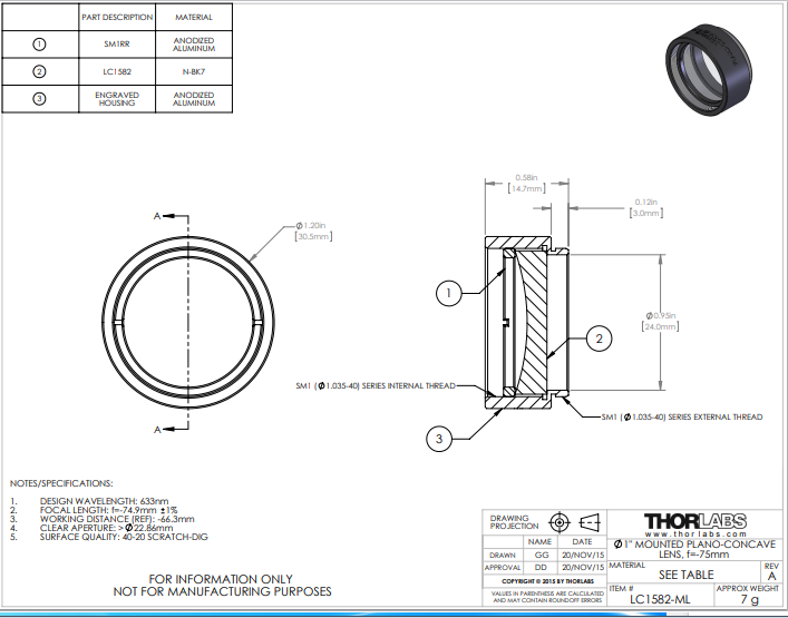 Thorlabs索雷博     LC1582-ML   平凹透镜