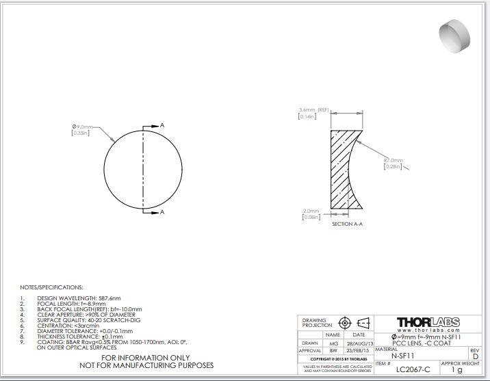 Thorlabs索雷博     LC2067-C   平凹透镜