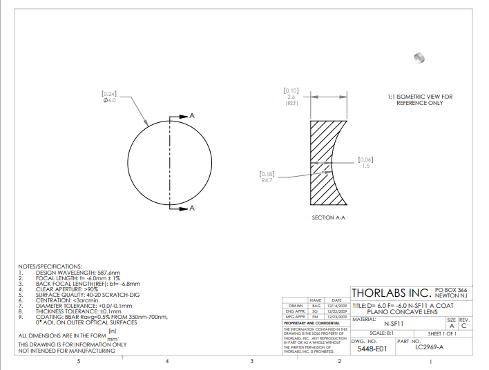 Thorlabs索雷博     LC2969-A   平凹透镜