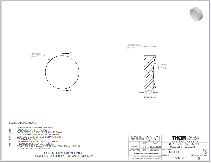 Thorlabs索雷博 LC2873-C 平凹透镜