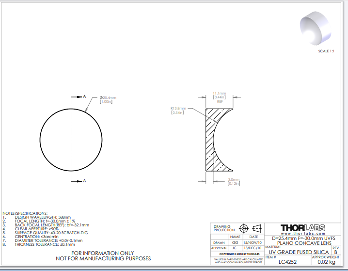 Thorlabs索雷博 LC4252 平凹透镜